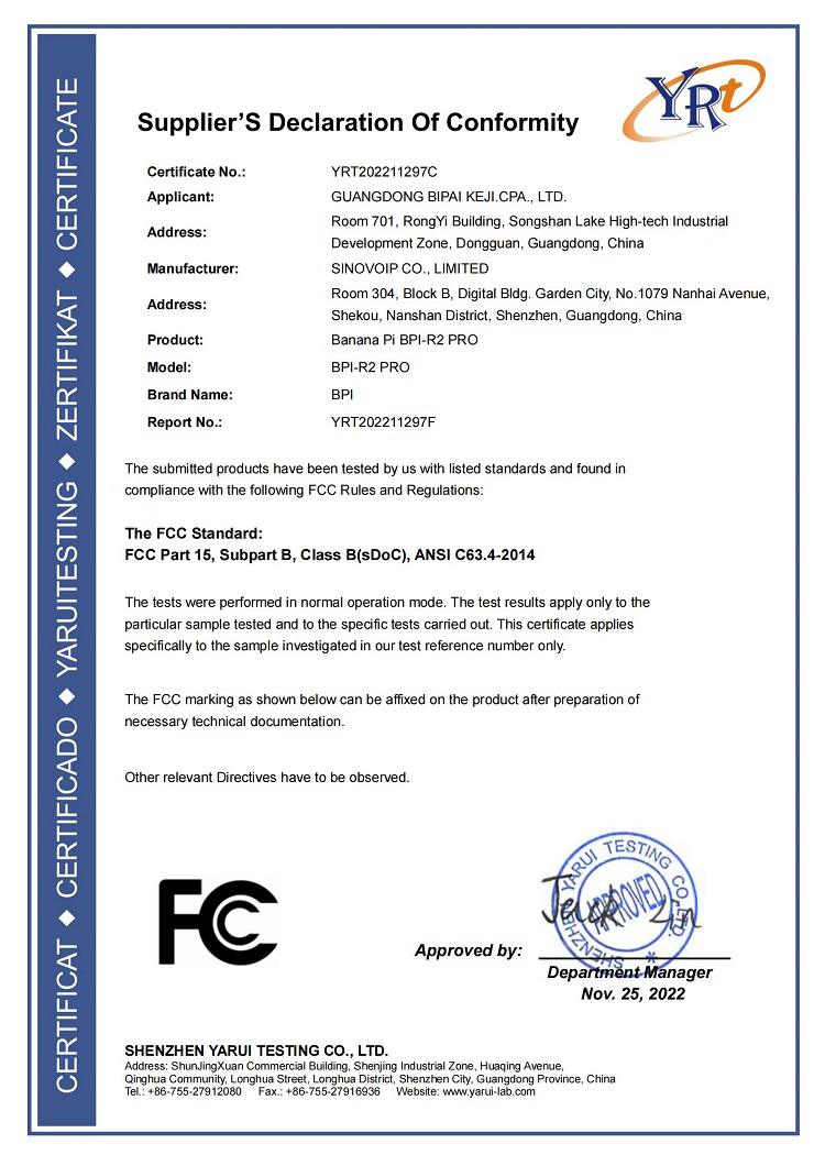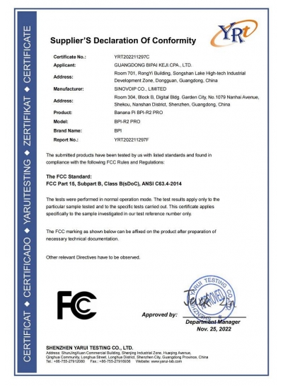 香蕉派 BPI-Leaf-S3 RoHS证书